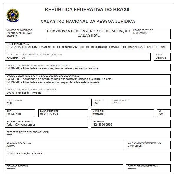 O CNPJ da Fundação de Aprimoramento e Desenvolvimento de Recursos Humanos do Amazonas (Imagem: Reprodução)