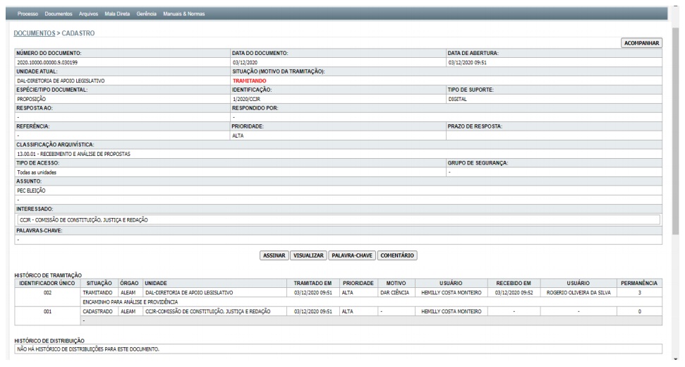 Além disso, a tela do sistema da ALEAM, que controla a tramitação dos processos no Legislativo, mostra que o autor da propositura de mudança da Constituição não é um deputado específico, e sim a própria CCJ, presidida pelo Delegado Péricles.