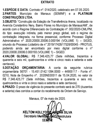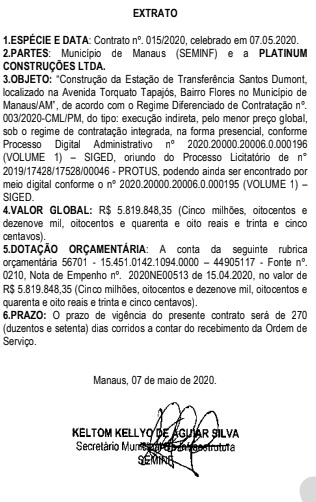 Dados obtidos pela equipe d’O PODER, revelam que a Estação de Transferência da Arena da Amazônia, na Avenida Constantino Nery, na zona centro-sul, está custando aos cofres públicos R$ 7.346.425,77; a estação do Conjunto Santos Dumont chega ao montante de R$ 5.819.848,35; a estação do Conjunto Parque das Nações, no valor de R$ 6.150.068,79 e a reforma do Terminal de Integração 3 (T3), chega a R$ 3.057.188,68.