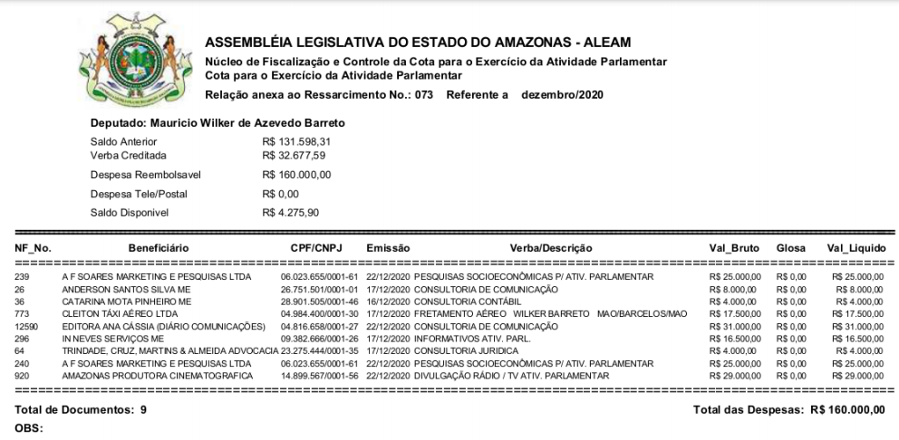 Uma viagem de barco para o município de Barcelos (a 401 quilômetros de distância da capital) custa, em média, R$ 150. Já um deslocamento feito em voo comercial, varia entre R$ 720 e R$ 1,2 mil. No entanto, em dezembro de 2020, o deputado estadual Wilker Barreto (Podemos) conseguiu gastar, em uma única viagem, R$ 17.500 para o mesmo município em voo fretado com dinheiro da Cota para Exercício da Atividade Parlamentar (CEAP), o ‘Cotão’.