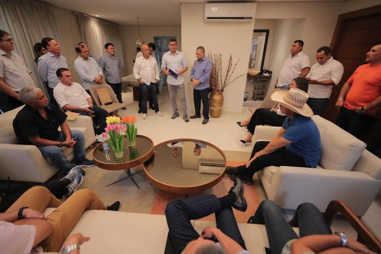 O governador Wilson Lima (União Brasil) se reuniu, nesta sexta-feira (05), com prefeitos de 35 municípios do interior do Amazonas. O grupo reforçou o alinhamento político e a liderança de Wilson Lima. Esse foi o primeiro encontro com a presença de todos aliados que apoiaram a reeleição do governador, depois das eleições de 2022.