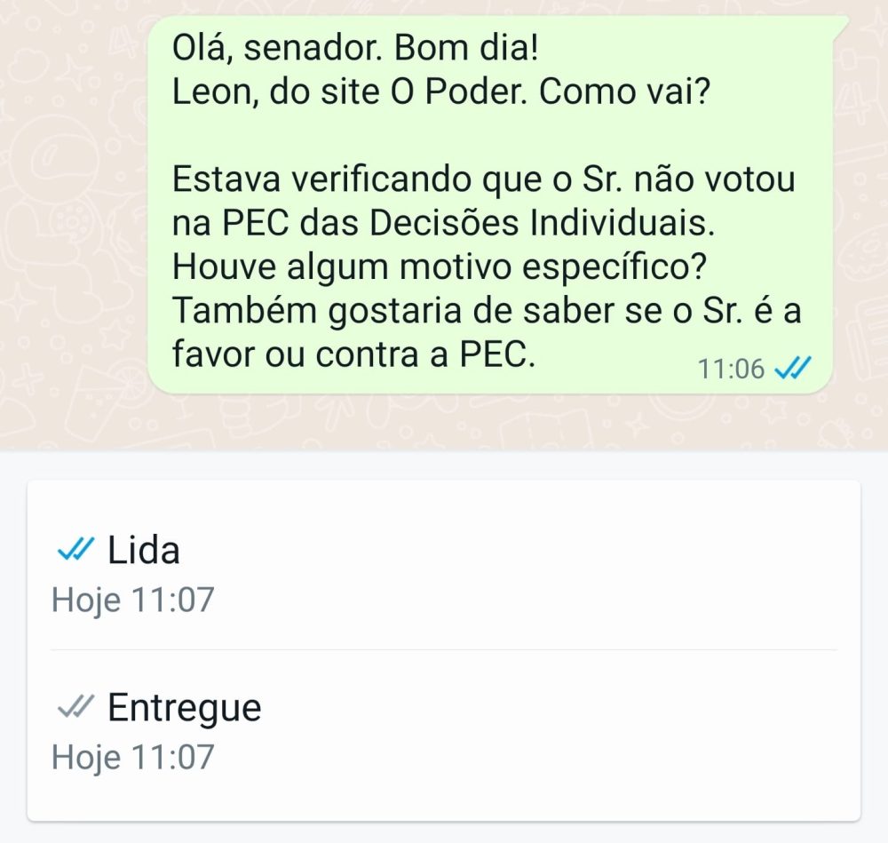 A reportagem questionou o motivo da ausência e se os referidos senadores seriam a favor ou contra a PEC que visa restringir decisões monocráticas nos tribunais superiores, como o Supremo Tribunal Federal (STF). A PEC recebeu o apoio de 52 senadores, 3 a mais do que o necessário para sua aprovação.