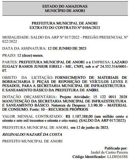De acordo com publicação no Diário Oficial dos Municípios do Amazonas (Doma), assinada pelo prefeito Régis Nazaré (Republicanos), o ato foi realizado visando atender às necessidades da Secretaria Municipal de Infraestrutura e Saneamento Básico.