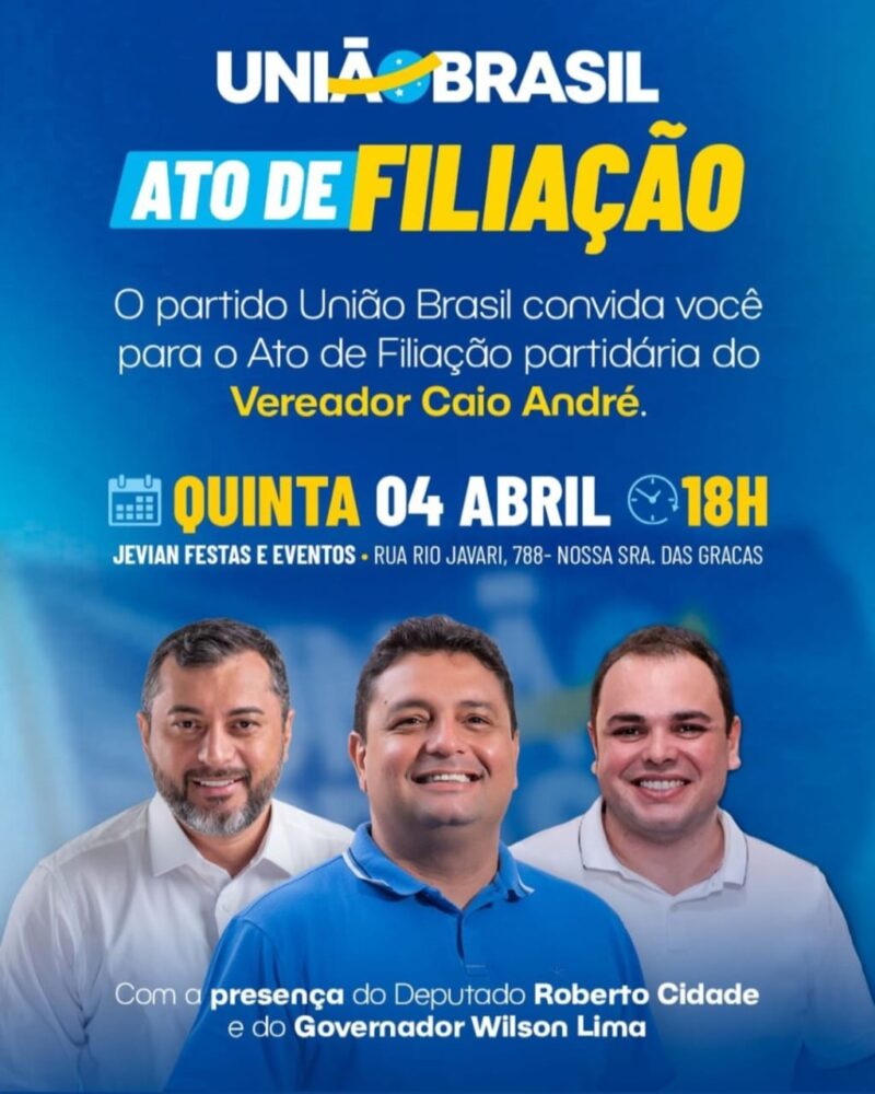 O presidente da Câmara Municipal de Manaus (CMM), vereador Caio André, filiado ao Podemos, deixará o partido e migrará para o União Brasil, que segundo ele, é o “maior partido do Amazonas”.