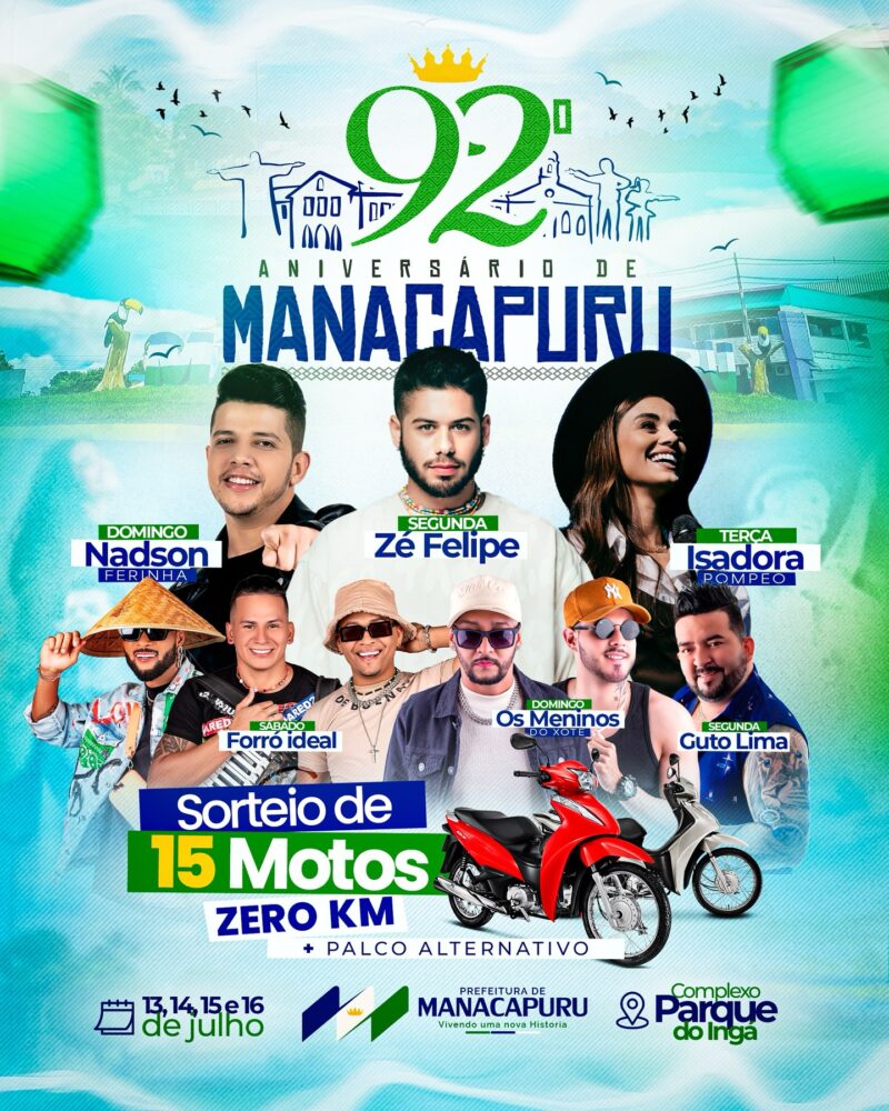 A Prefeitura de Manacapuru divulgou nota informando que a medida foi adotada em conformidade com a legislação eleitoral. “Lamentamos informar que o sorteio das motos, previsto para o 92º Aniversário da Cidade, será suspenso. Os veículos, que já foram adquiridos, serão reservados para sorteio em outra ocasião, após o período eleitoral”, declarou a administração municipal.