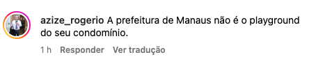 Enquanto uma opinião contrária destacou que Manaus não é um parque de condomínio para brincar. “A prefeitura de Manaus não é o playground do seu condomínio.”