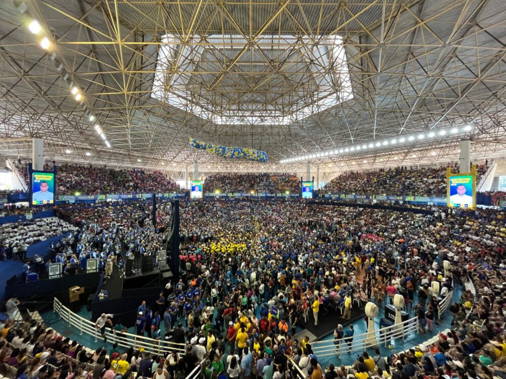 O União Brasil confirmou, na manhã deste sábado (3/8), que o deputado estadual Roberto Cidade será o candidato do partido à Prefeitura de Manaus. Com o maior arco de alianças da eleição municipal deste ano, que reúne sete partidos, a convenção lotou a Arena Poliesportiva Amadeu Teixeira, zona Centro-Sul da capital, com mais de 30 mil pessoas.
