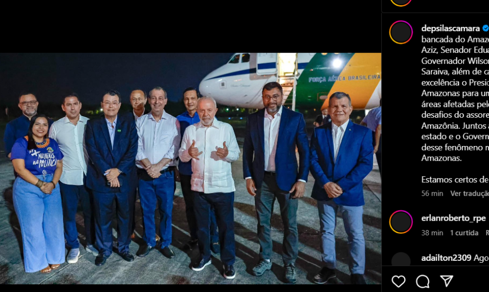 Enquanto as imagens compartilhadas por Braga e Omar Aziz nas redes sociais não incluem o governador, o perfil oficial do deputado federal Silas Câmara apresenta uma foto que mostra Lima e o superitendente da Suframa, Bosco Saraiva, ao lado de Lula e parlamentares, incluindo Braga e Omar.