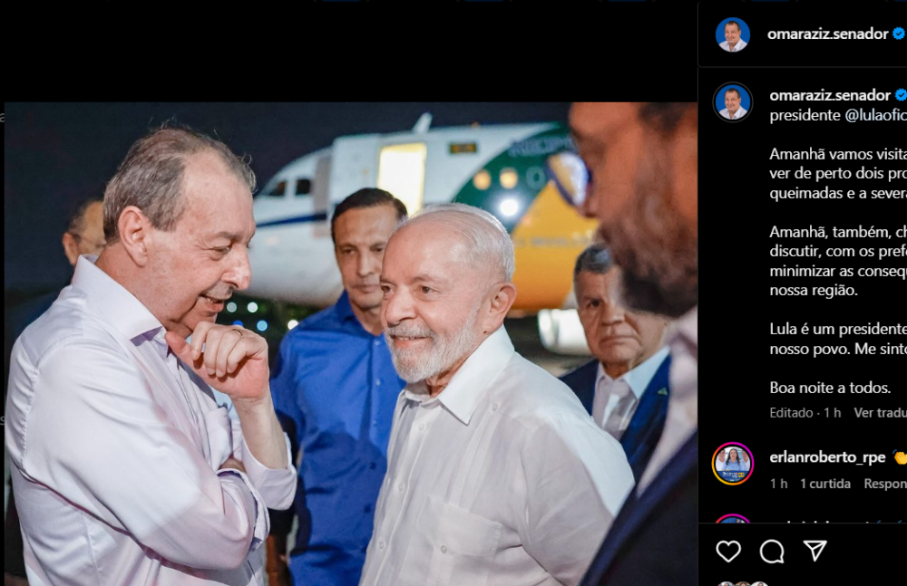 O senador Eduardo Braga e o senador Omar Aziz excluiram a presença do governador Wilson Lima em suas postagens nas redes sociais sobre a recepção ao presidente Lula em Manaus, na noite de segunda-feira (9).