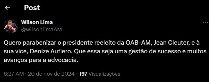 Leia mais: Jean Cleuter é reeleito presidente da OAB-AM