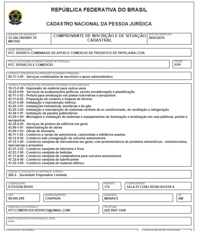 Segundo o extrato publicado, a contratação se deu por meio do Pregão Eletrônico nº 008/2025, com vigência de um ano, podendo ser prorrogada. A empresa contratada, registrada como RTC Serviço Combinado de Apoio e Comércio de Produtos de Papelaria Ltda., possui sede em Manaus e é classificada como Empresa de Pequeno Porte (EPP).