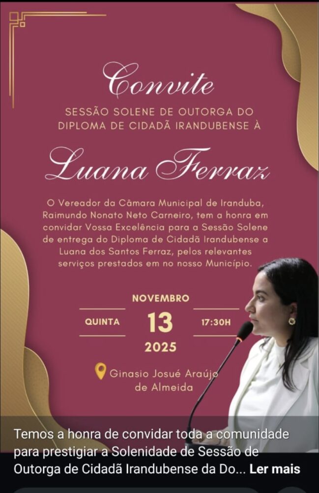 Servidores da rede municipal de ensino denunciaram estar sendo pressionados a comparecer e levar pessoas para um evento promovido pela Prefeitura de Iranduba. A atividade está relacionada à Sessão Solene de entrega do Diploma de Cidadania Irandubense à senhora Luana dos Santos Ferraz, esposa do prefeito Augusto Ferraz (DEM).