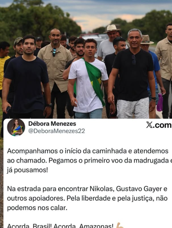 Ao embarcar no Aeroporto Internacional Eduardo Gomes, em Manaus, Débora Menezes afirmou que a participação no ato representa um chamado político. Segundo ela, a caminhada simboliza coragem e mobilização coletiva. “Não é uma viagem comum. Todo movimento começa quando alguém decide dar o primeiro passo, e quando a coragem vence o medo, a solidão se transforma em um grande movimento”, declarou.