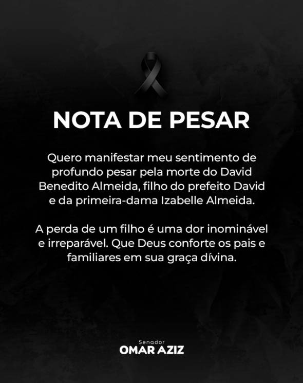 Também por meio de nota, o senador Omar Aziz (PSD) lamentou a perda e classificou a morte de um filho como uma dor “inominável e irreparável”. Ele pediu que a graça divina conforte os pais e toda a família neste momento de luto.