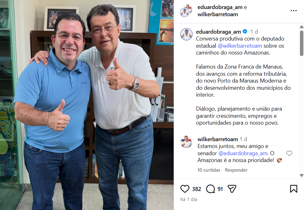 A reportagem tentou contato com o deputado estadual Wilker Barreto para obter mais detalhes sobre o encontro e os encaminhamentos discutidos com o senador Eduardo Braga, mas até o fechamento desta matéria não houve retorno.