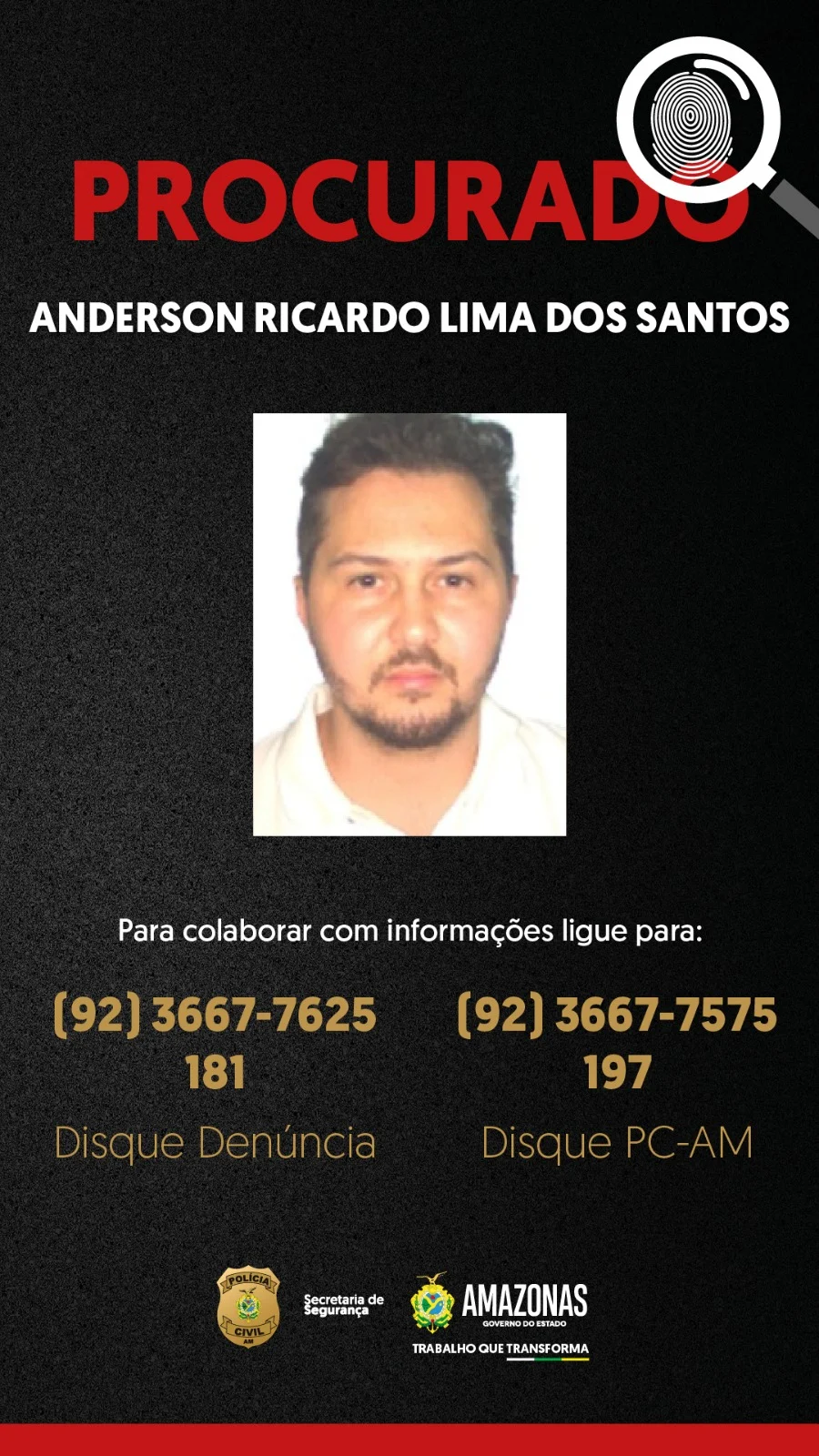 O empresário Anderson Ricardo Lima dos Santos, conhecido como Anderson Bandeira, é considerado foragido. Ele é apontado pelas investigações como integrante de uma organização criminosa suspeita de envolvimento em estelionato, lavagem de dinheiro, falsificação de documentos e outros crimes correlatos.